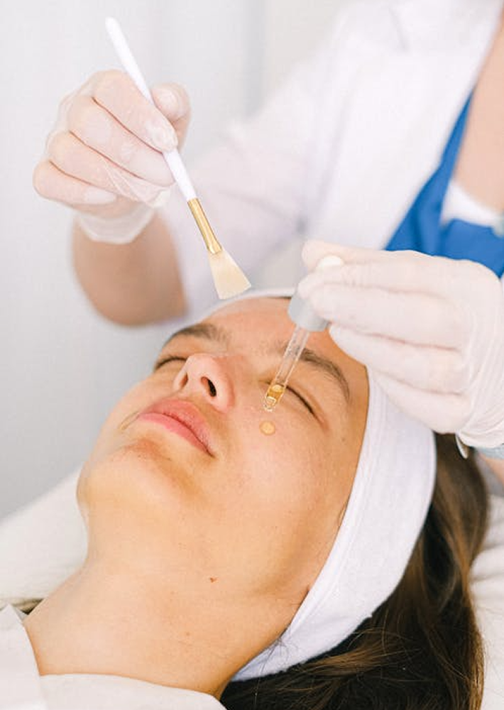 We use gentle chemical or enzymatic exfoliants plus vitamin C, niacinamide, and other brightening actives to improve clarity and glow.